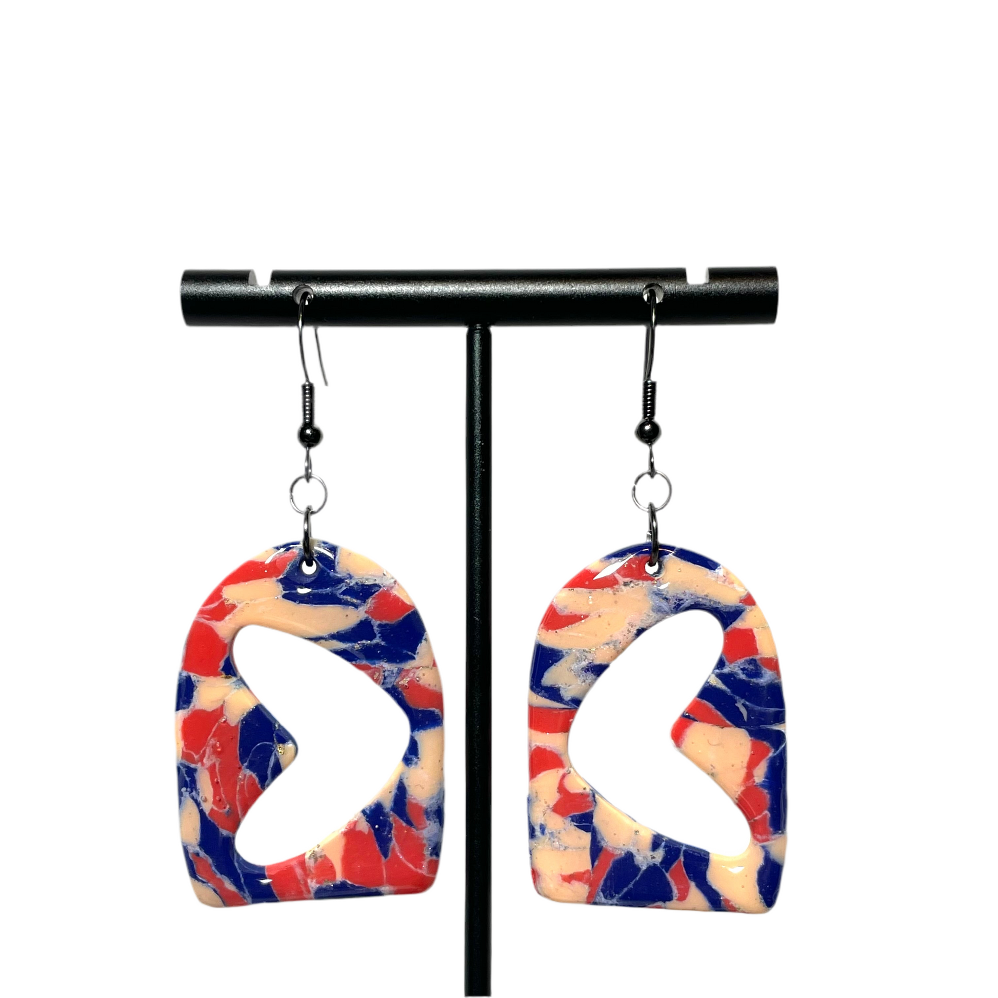 Black-coated nickel findings. Each pair is unique in its pattern.