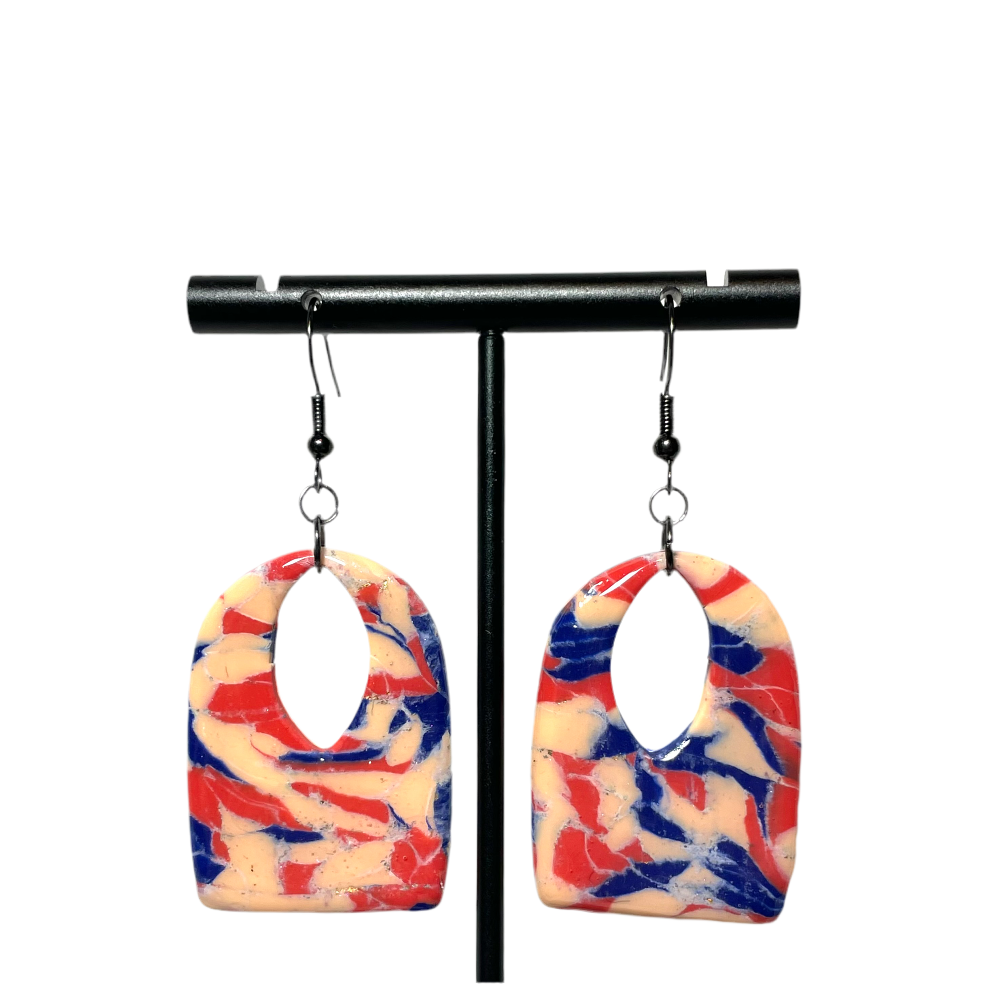 Black-coated nickel findings. Each pair is unique in its pattern.