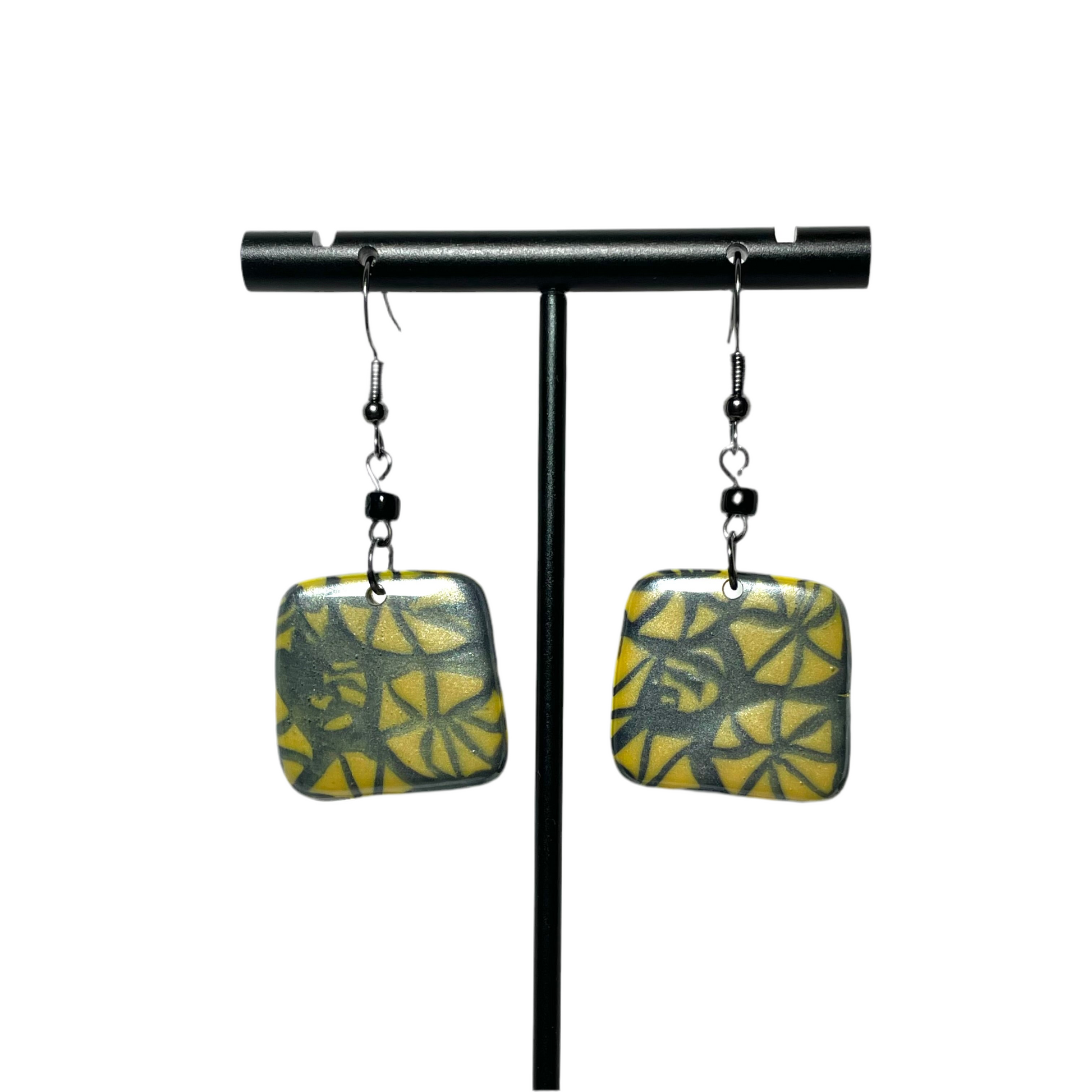 Glossy finish. Black-plated nickel findings. Each pair is unique in its pattern.
