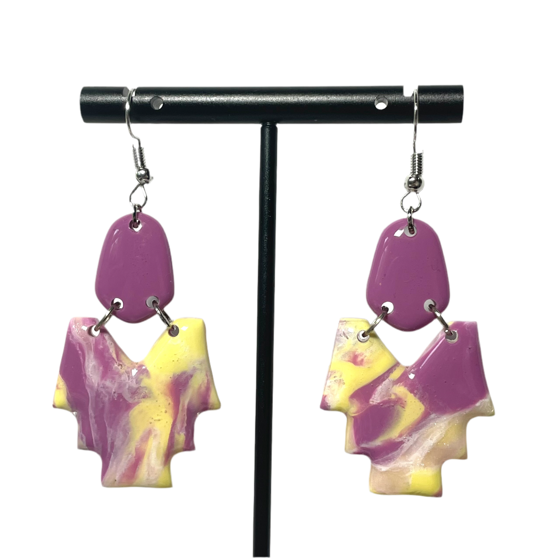 Glossy finish. Silver-plated stainless steel findings. Each pair is unique in its pattern.