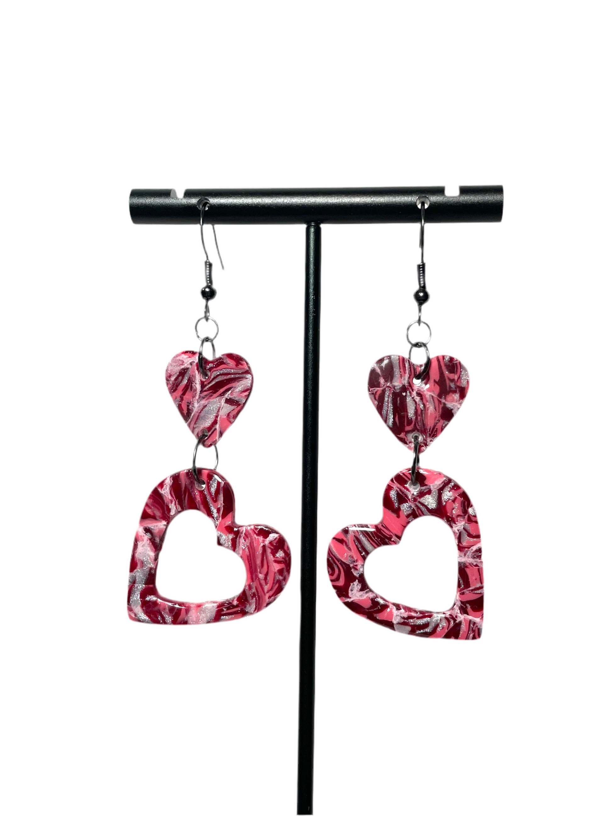 Glossy finish. Black-plated nickel findings. Each pair is unique in its pattern.