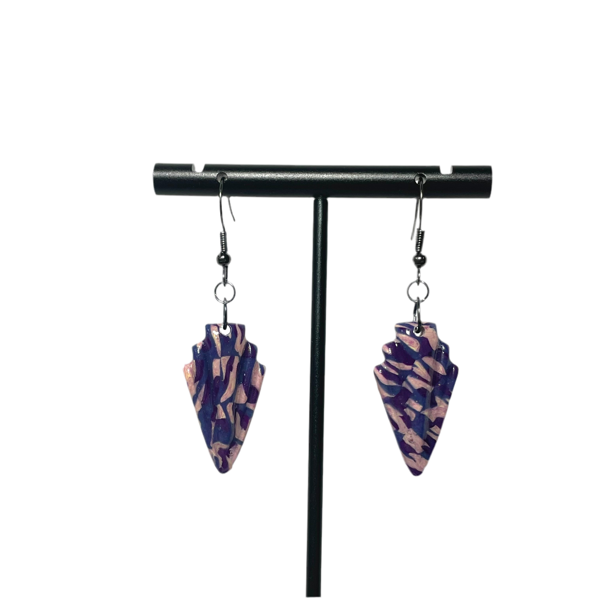 Glossy finish. Black-plated nickel steel findings. Each pair is unique in its pattern.