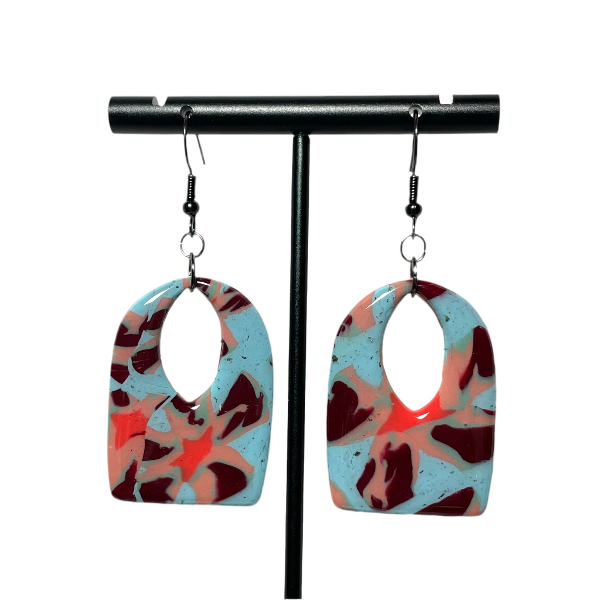 Glossy finish. Black-plated nickel findings. Each pair is unique in its pattern.